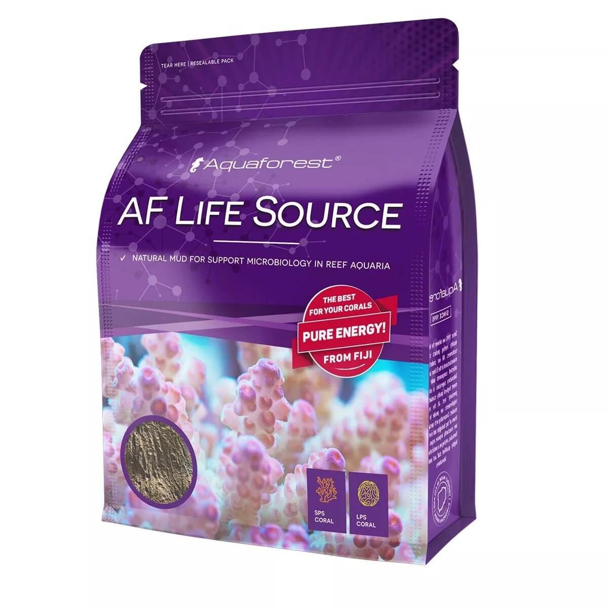 Aquaforest AF Life Source is a natural mud designed to buffer and enhance microbiological activity in saltwater aquariums, stabilizing biological functions and providing corals with access to essential minerals.