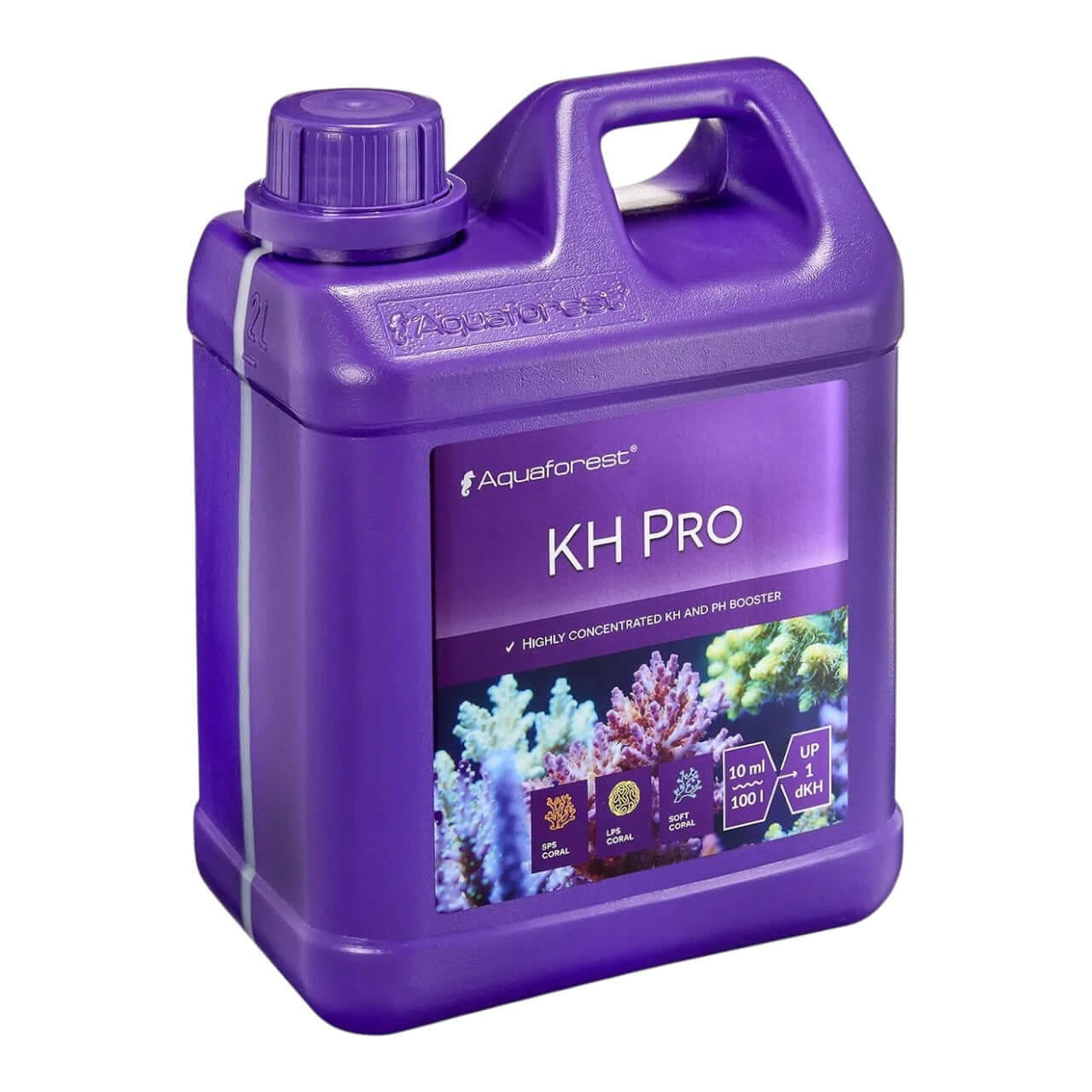 Aquaforest KH Pro 2L is used to quickly restore carbonate hardness (KH) in marine aquariums while also enriching the water with potassium to support healthy coral growth.