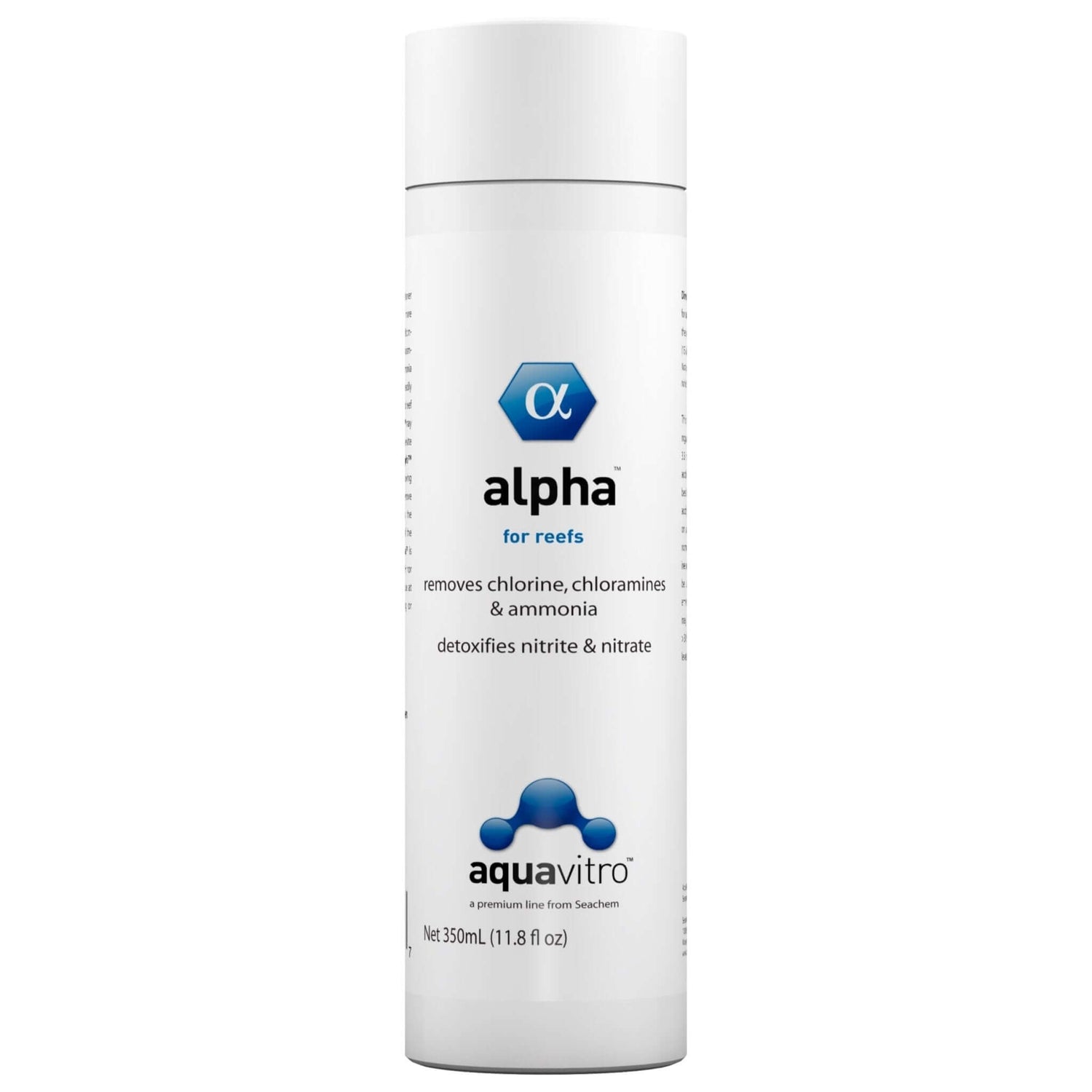 alpha™ is a concentrated conditioner for saltwater. It is 50% more active than our Prime® and 375% more active than the next closest competitor. alpha™ removes chlorine, chloramine and ammonia. It converts ammonia into a safe, non-toxic form that is readily utilized by beneficial bacteria and reef inhabitants such as clams. alpha™ may be used during tank cycling to alleviate ammonia/nitrite toxicity. alpha™ detoxifies nitrite and nitrate, allowing the biofilter to more efficiently remove them. alpha™ also promotes the production and regeneration of the natural slime coat on fish. alpha™ is non-acidic and will not impact pH, nor will it over-activate skimmers. Use at start-up and whenever adding or replacing water.