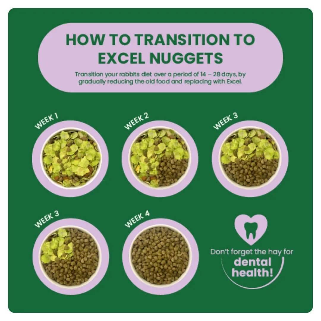 Vets are seeing a growing number of overweight rabbits, usually as a result of poor diet and lack of exercise. Those extra pounds put a strain on a pet’s good health and can lead to fatal illnesses. Excel Light Nuggets is a complementary calorie-controlled food that will help reduce and control a rabbit’s weight at the correct level.