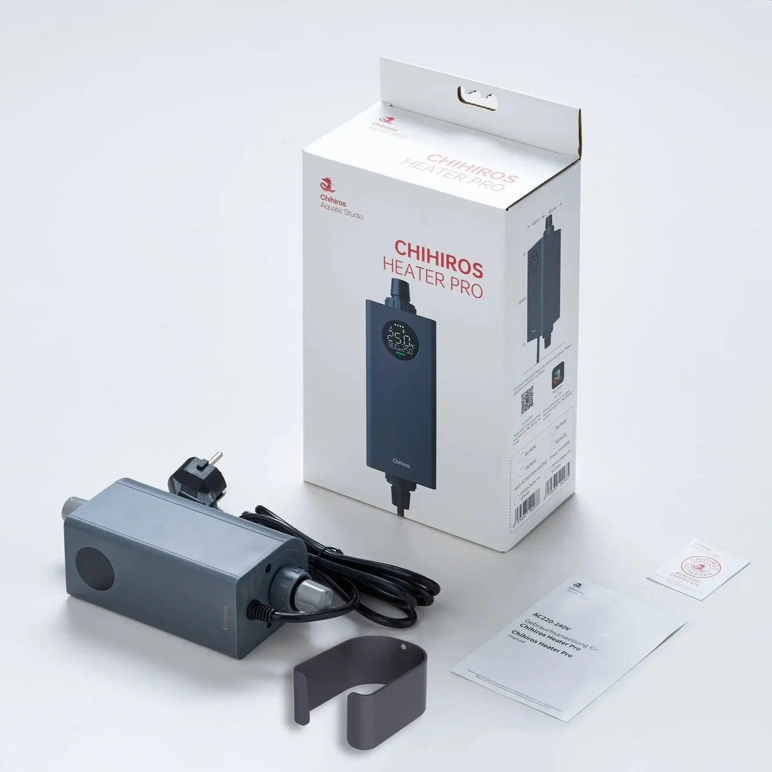 Chihiros Heater Pro 10-1000W is an external heater designed for aquariums measuring 150-180 cm and with a water volume of 450-650 L, allowing temperature adjustments from 10°C to 35°C via the My Chihiros app.
