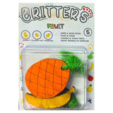 Critters Chew Toy Wooden Fruit is designed for supervised enjoyment by pets, with instructions to remove it if damaged or if the pet shows signs of discomfort.