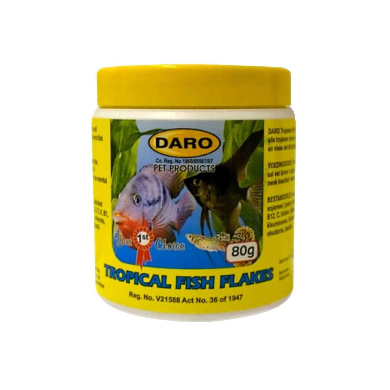 Daro Tropical Fish Flake Food is a well-balanced food designed for all mid-to-top feeding tropical fish, recommended to be fed a pinch daily.