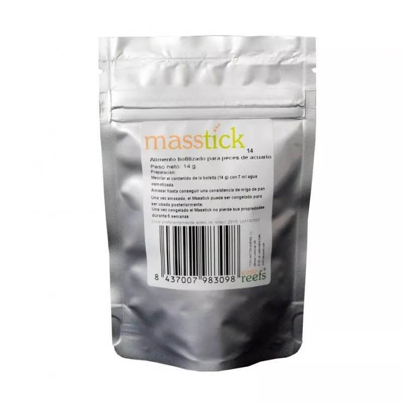 Easy Reefs Masstick Fish Food comes in a powder formula that needs to be rehydrated and will create a thick and sticky paste that can then be attached to any surface in your aquarium. The freeze-dried powder is composed of raw materials that provide balanced nutrition for omnivorous fish and invertebrates. If your inhabitants have specific needs, Masstick can be blended with many different types of mollusk, fish eggs, mysis, rotifers, and additives like Selcon. Once your paste is created, you can then stick it to your glass, rocks, or target feed corals with it. Placing small chunks around the tank will allow non-aggressive fish to find the food while aggressive fish are distracted.