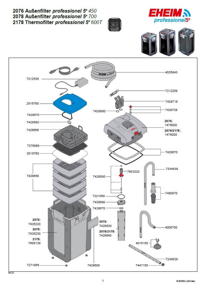 The EHEIM professionel 5e is our best external filter to date, offering everything an aquarium enthusiast could wish for. Each function can be individually programmed and controlled wirelessly. The electronic system monitors all functions and keeps the flow constant as well as delivering strong performance due to the large filter volume. The clever design and the regulation of the electronic flow extend the maintenance intervals for the biological filter material considerably and, in addition, there is the acclaimed smooth EHEIM performance. The skilled workmanship, the high quality materials and the renowned "Made in Germany" reliability, combined with the 3 year warranty, leave nothing to be desired.