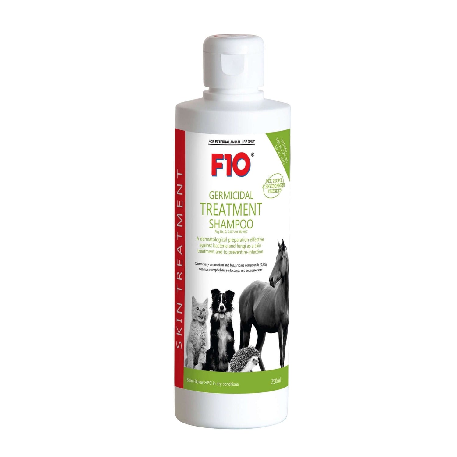 F10® Germicidal Treatment Shampoo contains F10 core actives to treat yeast and fungi, like ringworm. It also helps to get other skin diseases under control. It is important to remember that ringworm can spread and therefore one needs to take care to ‘treat’ the environment. The F10 product range consists of disinfectants and personal hand care products to stop ringworm from spreading. The products are safe, effective, and suitable for dogs, cats, and horses.