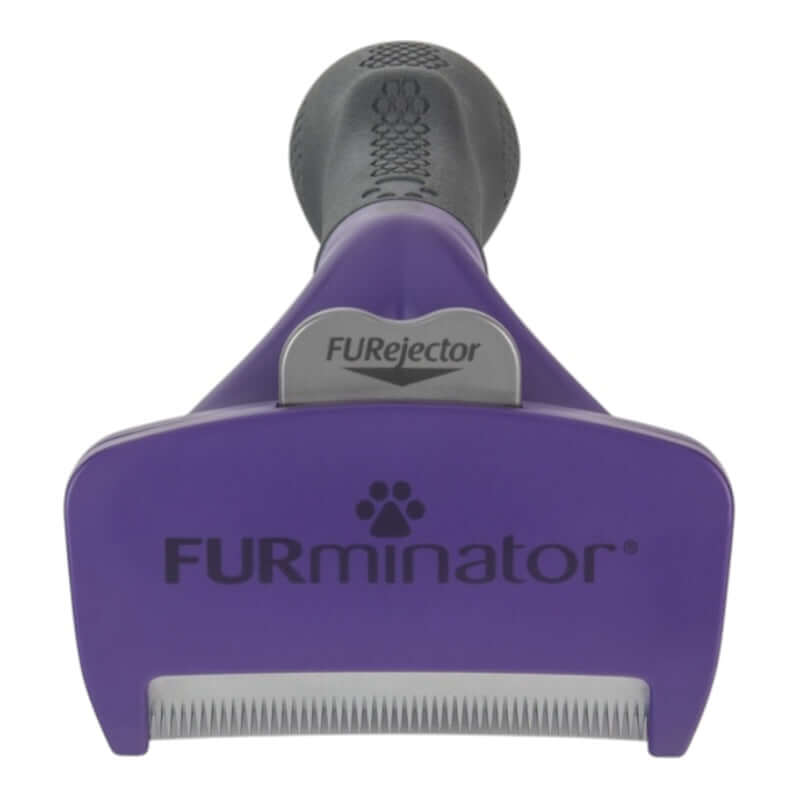 The FURminator® Undercoat deShedding Tool for medium-sized and large cats with long hair reduces loose hair from shedding up to 90%. It also helps to reduce hairballs. The stainless steel deShedding edge reaches through the topcoat to safely and easily remove loose, dead hair and undercoat. This allows for deShedding without damaging the topcoat or cutting the skin, when the tool is used as directed. The special Skin Guard® glides over your cat's skin and prevents digging in at the edges. Moreover, the curved edge conforms to a pet’s natural build and shape for comfort. The FURejector® button releases the collected excess hair with ease, making deShedding easier than ever. When the tool is stored, the Edge Guard protects the teeth to ensure the durability of this high quality product. Thanks to the ergonomic handle of the FURminator® Undercoat deShedder, deShedding is comfortable for pet parents as well. A quality deShedding Tool like the FURminator® Undercoat deShedding Tool removes significantly more loose hair than a standard comb or brush. For best results, use weekly for 10-20 minutes and even more frequently during the shedding season. FURminator® provides grooming confidence with the ideal tools for professional grooming at home.