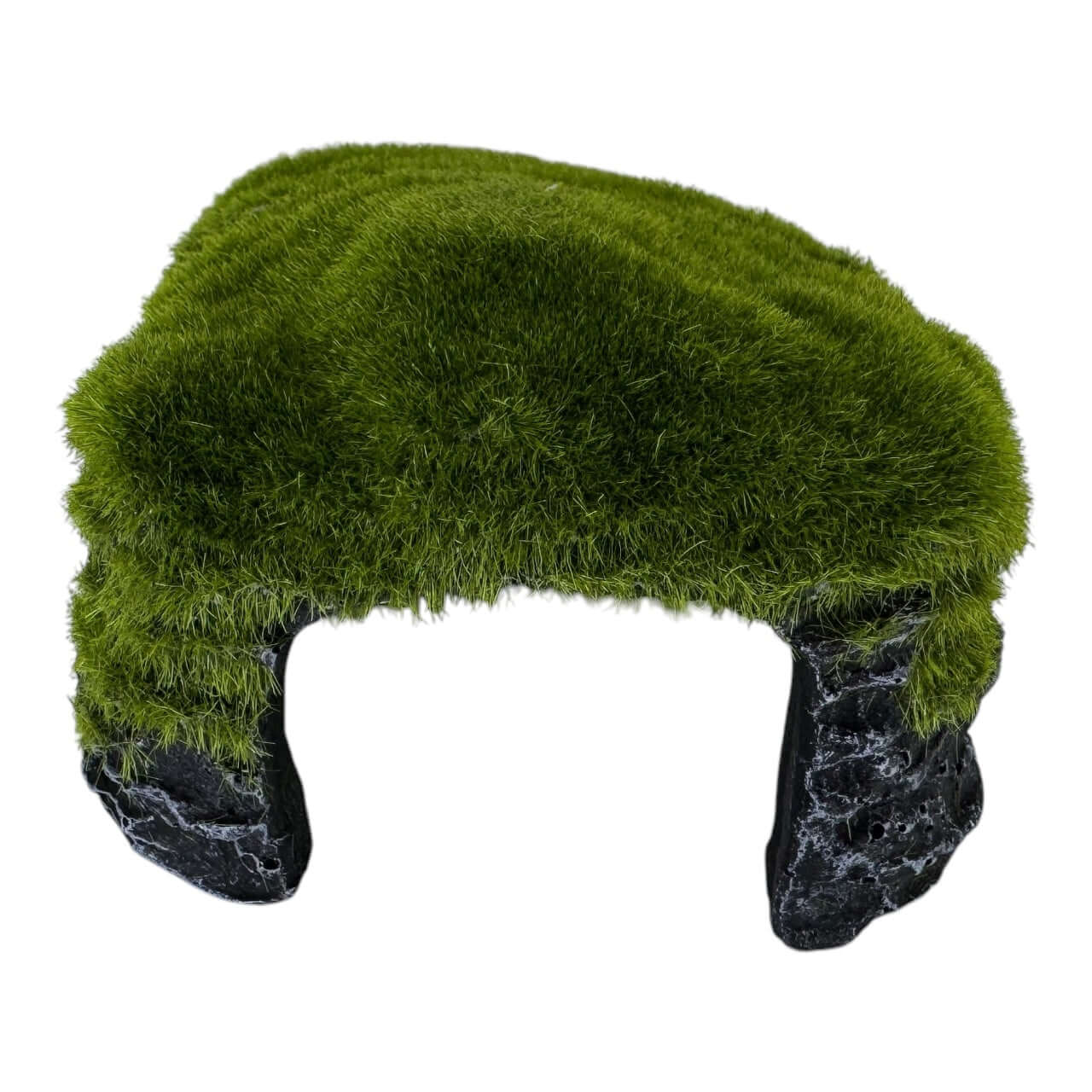 The top and sloping sides are covered in lush, vibrant light-green artificial grass, made from dense, short-pile material that mimics fresh moss or grass. The uniform texture creates a lively, natural look without overwhelming your setup.