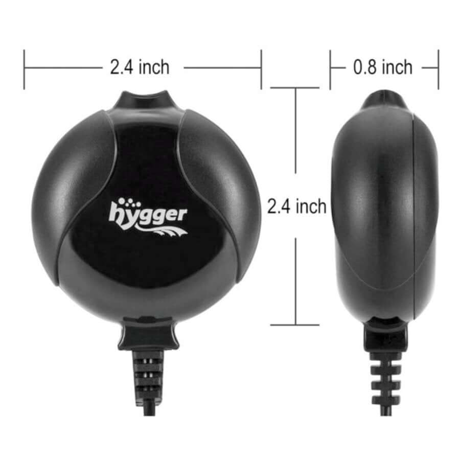 Hygger Mini Air Pump is designed for use in petite aquariums and hydroponic systems, providing ultra-quiet aeration for tanks ranging from 3.8 to 56.8 liters (1 to 15 gallons).