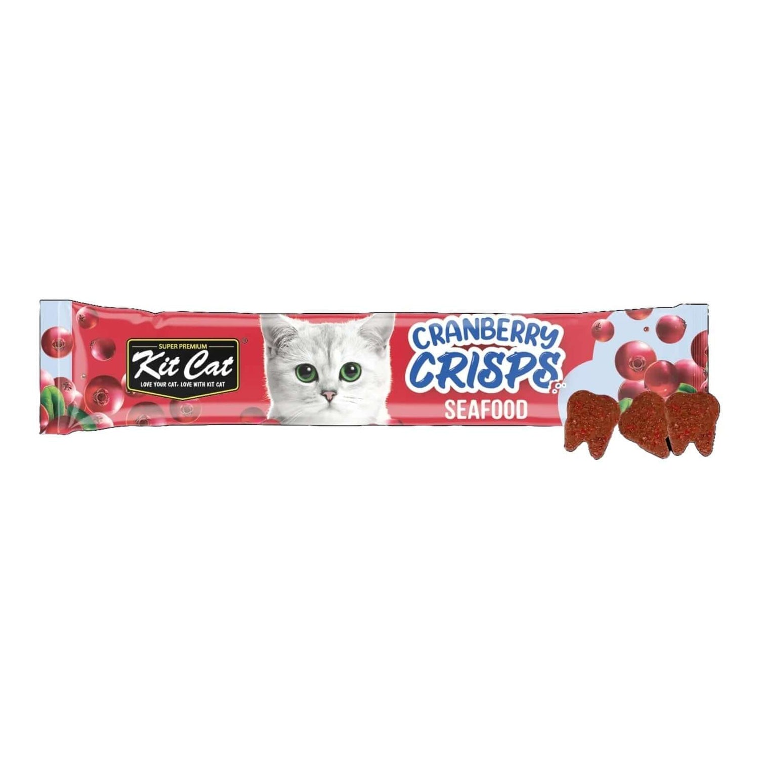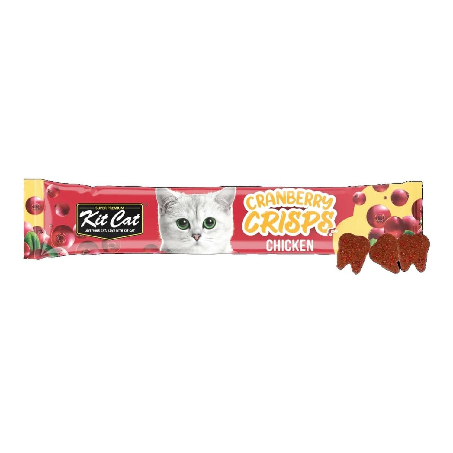 Kit Cat Cranberry Crisps 20g are specially formulated snacks infused with cranberry extract to reduce the risk of urinary issues in cats while enticing even the pickiest eaters with their crunchy texture and flavor.