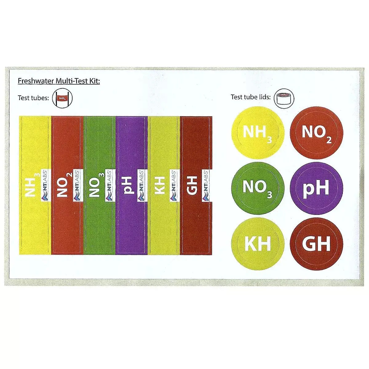 The Marine Lab Multi-Test Kit by NT Labs is an essential tool for maintaining a healthy marine aquarium. This kit allows you to test four key water parameters: ammonia, nitrite, nitrate, and pH, ensuring your aquatic environment stays balanced and safe for your marine life. Utilizing liquid reagents, the kit offers improved accuracy over other testing methods. The kit includes full instructions detailing optimal levels and correction suggestions, along with a convenient test tube rack. Each test is simple to perform: just follow the pictorial instructions, use the included color chart, and apply the provided color-coded stickers to keep your tests organized and contamination-free.
