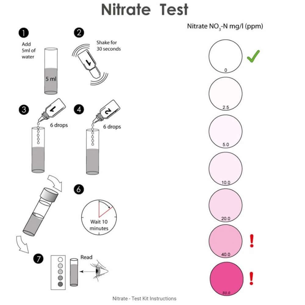 The NT Labs Nitrate Test provides a simple, easy to use testing kit for determining Nitrate (NO3) levels in both ponds and freshwater aquariums. The NT Labs Nitrate Test Kit comes complete with test tube and liquid reagents to provide accurate results for 30 tests.