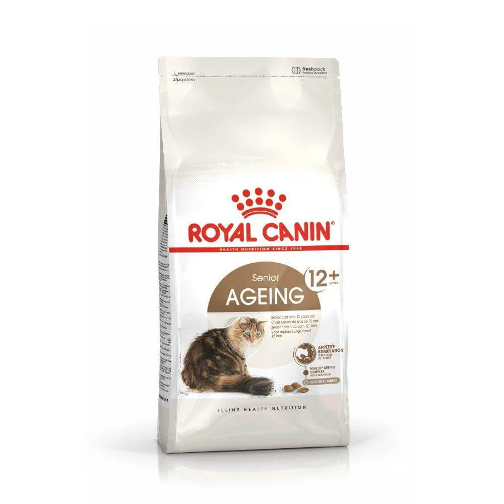 Royal Canin Ageing +12 Cat Food is formulated to support senior cats aged 12 and older by promoting healthy ageing, stimulating appetite, and maintaining renal and urinary health.