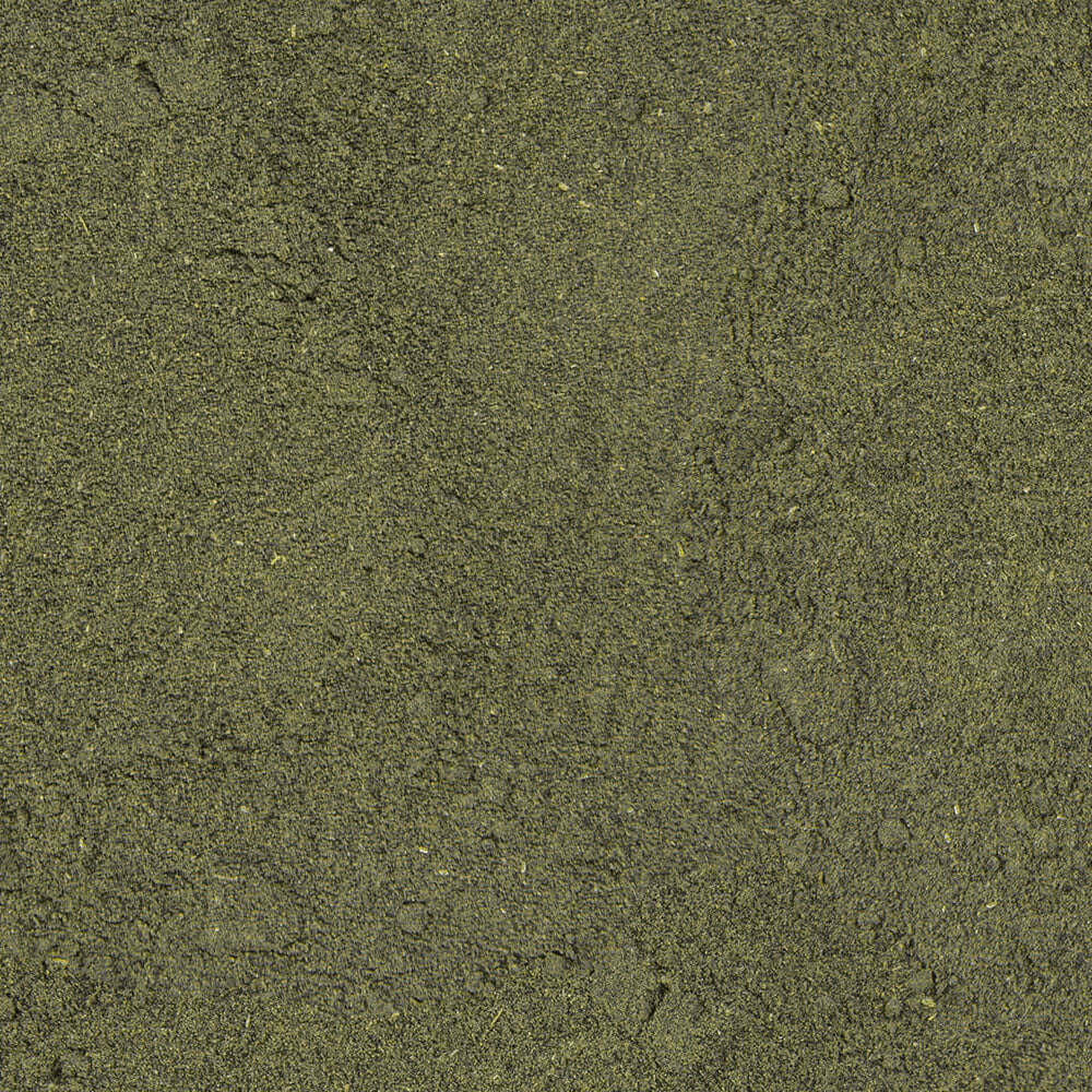 spirulina (51%), krill meal (18%), brine shrimps, fish meal, wheat flour, alfalfa, stinging nettle, parsley, brewers yeast, sea algae meal, paprika, Ca-caseinate, crude lecithin, spinach, gammarus meal, cod-liver oil, carrots, whole egg powder, fenugreek seeds, fennel seeds, mannan oligosaccharides, anise seeds, Haematococcus algae, green-lipped mussel meat meal, garlic.
