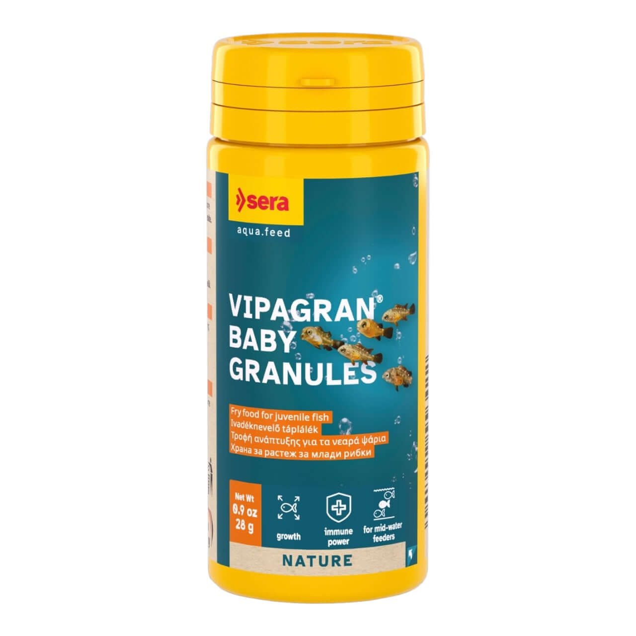 Sera Vipagran Baby Granules is a complete fry food designed for all juvenile fish that feed in the middle water zone, providing high-quality nutrition for optimal growth and immune support.