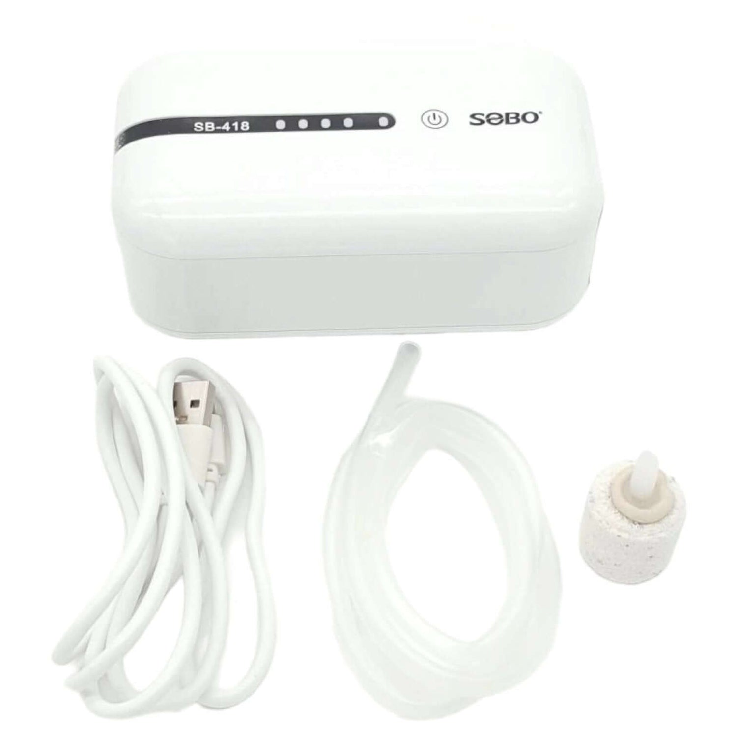 SOBO SB-418 AC/DC USB Chargeable Single Outlet Backup Air Pump is designed to provide air supply with a flow rate of 3 liters per minute and a pressure of 0.015 mpa, functioning for approximately 24 hours after a USB charge.