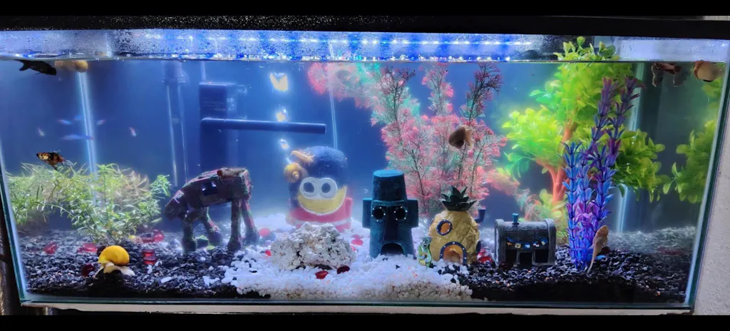 SpongeBob SquarePants Pineapple Squidward and Krusty Combo Ornament Set is an aquarium ornament set that includes a Pineapple House, the Krusty Krab, and Squidward's Home.