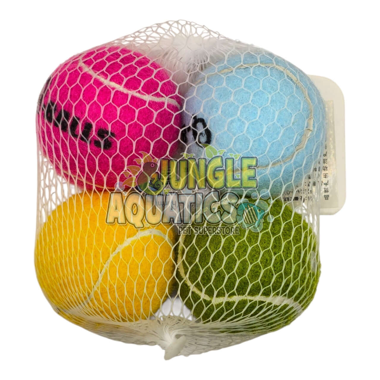 Squeaky Tennis Balls 4 Pack are designed for fetch, play, and keeping dogs active with built-in squeakers and vibrant colors for visibility.