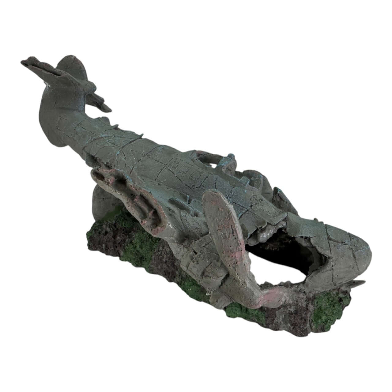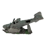 Sunken War Airplane Aquarium Ornament is used to enhance aquarium décor by providing a unique, historical focal point and hiding spots for fish and aquatic creatures.