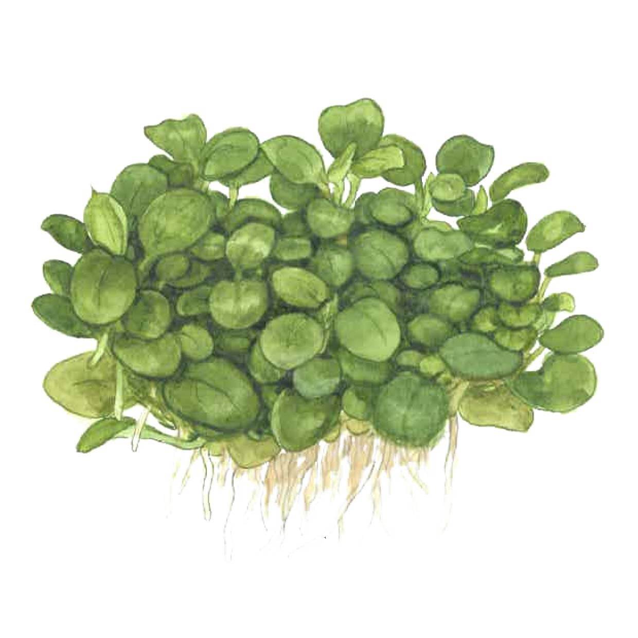 Tropica 101B TC Tissue Culture - Anubias Barteri Mini Coin LIMITED EDITION is used for enhancing aquariums, particularly in nano setups, by providing a dense cushion of small, round, deep green leaves that thrive when attached to rocks and tree roots.