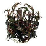 Hygrophila pinnatifida originates from India. It obtains brown, patched leaves on the surface with a distinctive burgundy colour underneath. It creates horizontal side shoots and the top shoots should be pinched out in order to maintain compact and attractive growth. The horizontal side shoots easily attach to both wood and rocks. Growth is moderate, stems 15-40 cm tall and 10-20 cm wide, and the colour is attractive when planted in small groups with a plain background. Intense lighting ensures compact growth due to the plant's slow to medium growth rate.